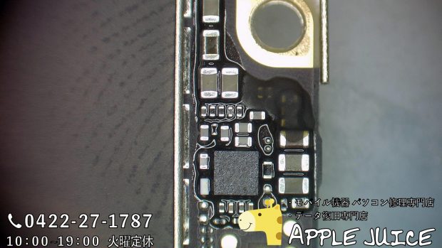 しかしご依頼のiPhone7はとてもキレイで、浸水跡は全くなかったため、今回は浸水による故障ではなく経年劣化などが要因で基板故障したと考えました。
