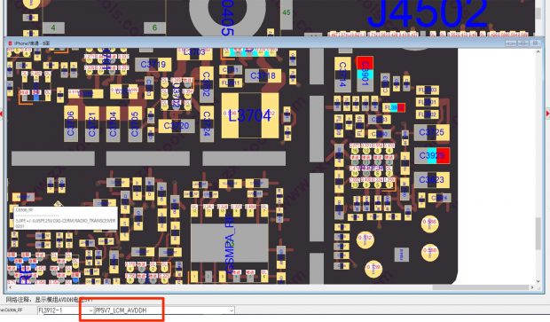 回路の名前は「PP5.7V_LCM_AVHDD」という信号が短絡(ショート)をお越し、液晶パネルに電力を伝えることが出来ず、画面が真っ暗になってしまったと判明。