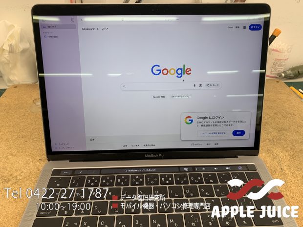 この症状はA1706・A1707・A1708でよく見られるもので、長年の開閉によってバックライトケーブルが摩耗・断線して起こります。
